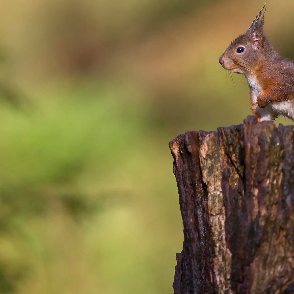 Eekhoorn vastgelegd vanuit een vogelhut in de bossen
