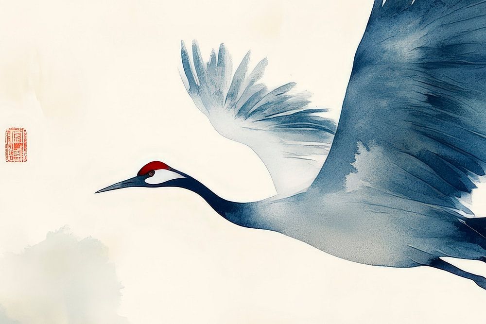 The crane floats elegantly through the gentle mist, its impressive wings spread out in a harmonious blue colour. Surrounded by delicate bamboo, the motif radiates calm and grace. Ideal for the bedroom, it creates a peaceful atmosphere that invites you to dream and refines the room ambience.