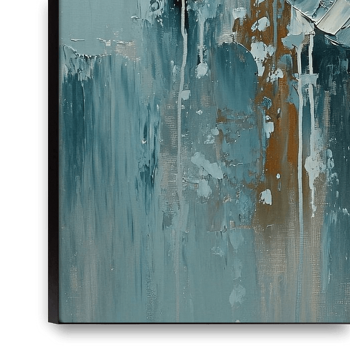 This unique painting combines an abstract style with the majesty of an elephant. The impressive brush strokes give the design a dynamic, expressive look, with the use of different shades of blue and white creating a soothing and modern feel. The elephant's head, central to the design, is rendered in an abstract manner, with the texture…