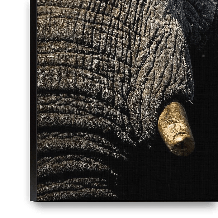 Beautiful details of this wild elephant from northern Botswana. You can see from details that life in the wilderness of southern Africa leaves its mark. This portrait of an elephant will not look out of place in your office or living room. A photo you will keep looking at.