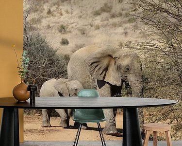 Buy the photo Elephant with young South Africa by Ralph van Leuveren on canvas, ArtFrame, poster and wallpaper, printed on demand in high quality.