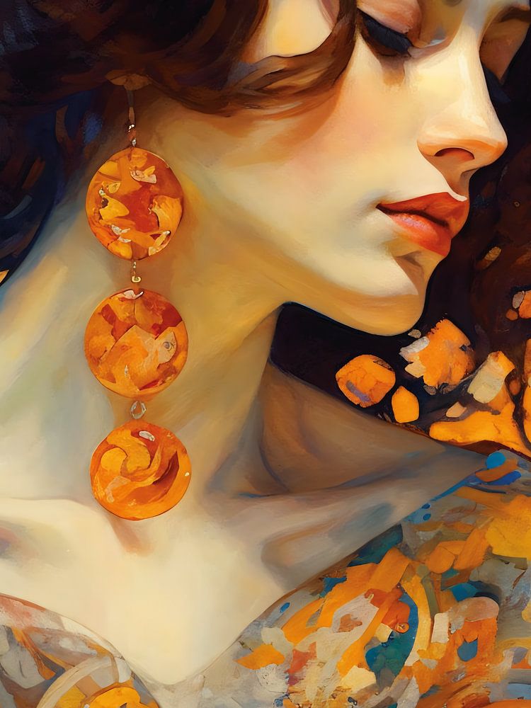 Digital portrait of a woman. Inspired by artists such as Gustav Klimt, Alphonse Mucha and Vincent van Gogh.