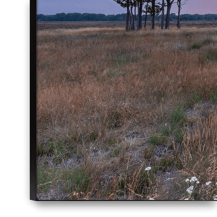 Eltspeetse Heide (Gelderland, Netherlands) was photographed during sunset. A rain shower was approaching on the left, but the sun still had room to set beautifully.