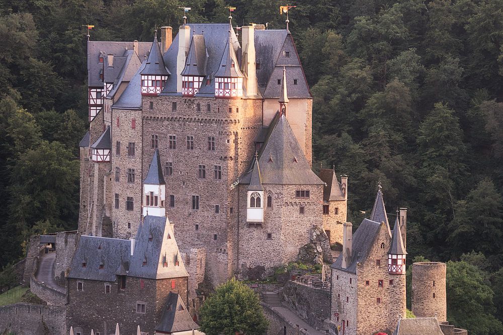 Eltz Castle, or Burg Eltz, is an iconic medieval castle in the hills around the German Moselle River between Koblenz and Trier. It is still owned by a branch of the same Eltz family that lived there in the 12th century, 33 generations ago.