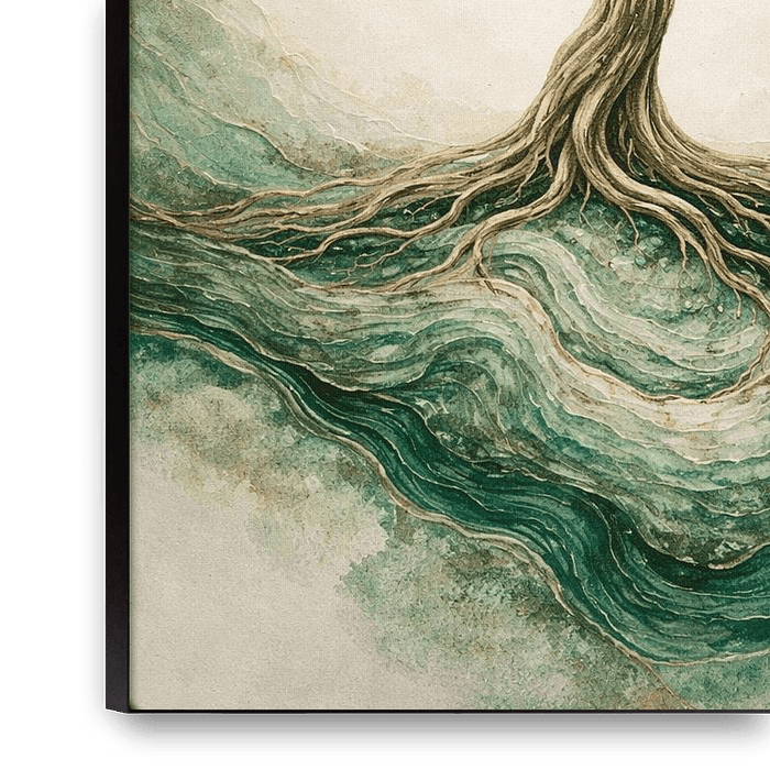 This artwork presents a symbolic Tree of Life designed to reflect inner peace, emotional healing, and personal identity. The tree’s canopy is formed from luminous emerald-like leaves, each resembling a precious gemstone that represents growth, prosperity, and renewal. Emerald has long been associated with balance, clarity, and…