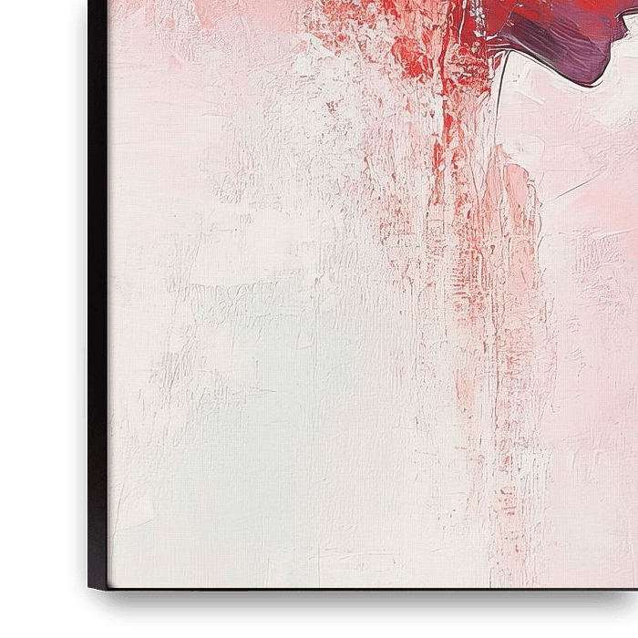 Emotional Abstract - This abstract painting shows an energetic blending of pink and red paint, in which the subtle contours of a human face can be discerned, surrounded by heavily smudged and splattered paint techniques that evoke both dynamism and emotion.