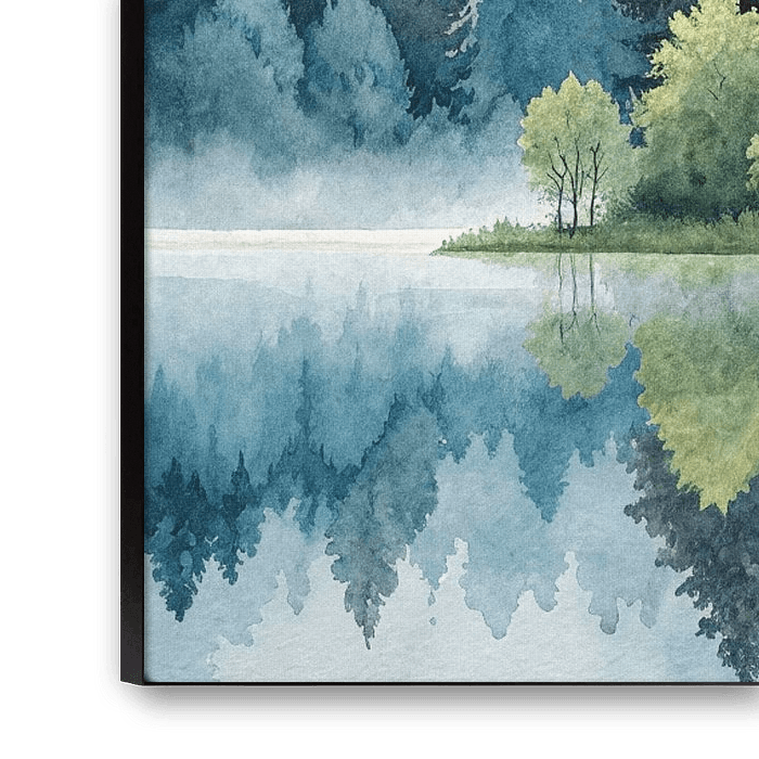Buy this landscape artwork Enchanted Lakeside Forest: A Watercolor Dreamscape of Misty Mountains and Vibrant Trees by Artistic on canvas, ArtFrame, poster and wallpaper, printed on demand in high quality.