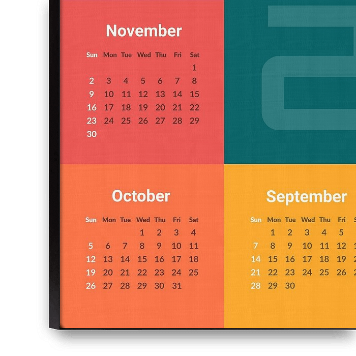 Keep 2025 organised with this stylish unique calendar, this design adds both functionality and aesthetics to your home or office. Calendar in English design.