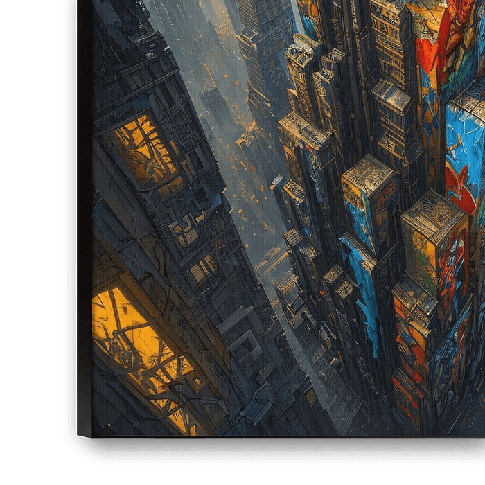 Entwined Realities From the top of an imposing tower stretches an enchanting view of the city. The city, steeped in history and culture, reveals its stories and secrets in the form of skyscrapers decorated with colourful graffiti.