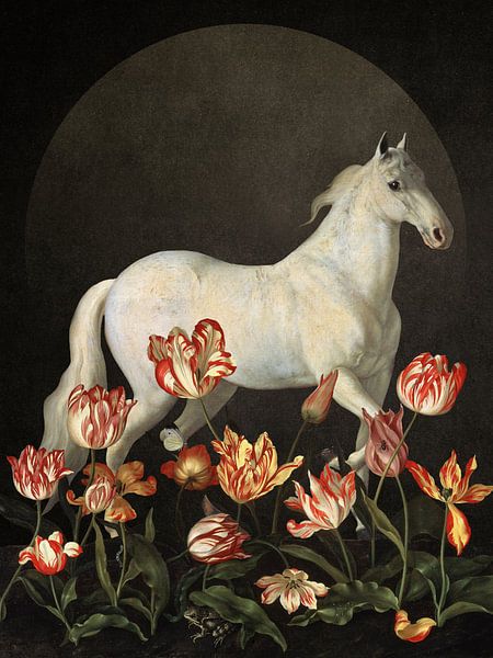 Buy this collage Equestrian Bloom by Marja van den Hurk on canvas, ArtFrame, poster and wallpaper, printed on demand in high quality.