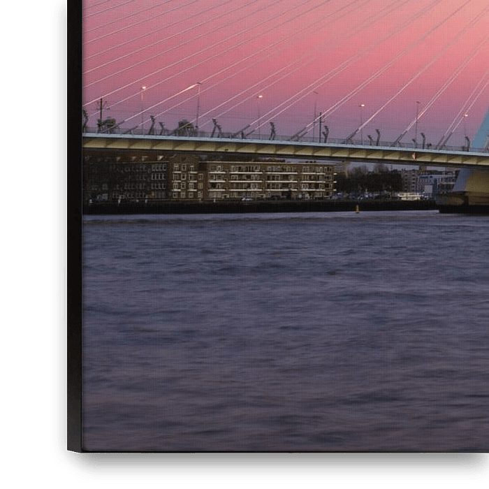 Buy this of Rotterdam Erasmus Bridge Rotterdam at dusk by Esmée Fotografeert on canvas, ArtFrame, poster and wallpaper, printed on demand in high quality.