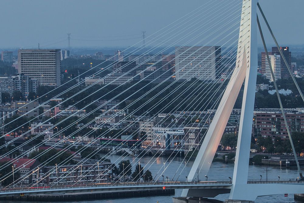 Erasmus Bridge Rotterdam in the evening by John Ouwens