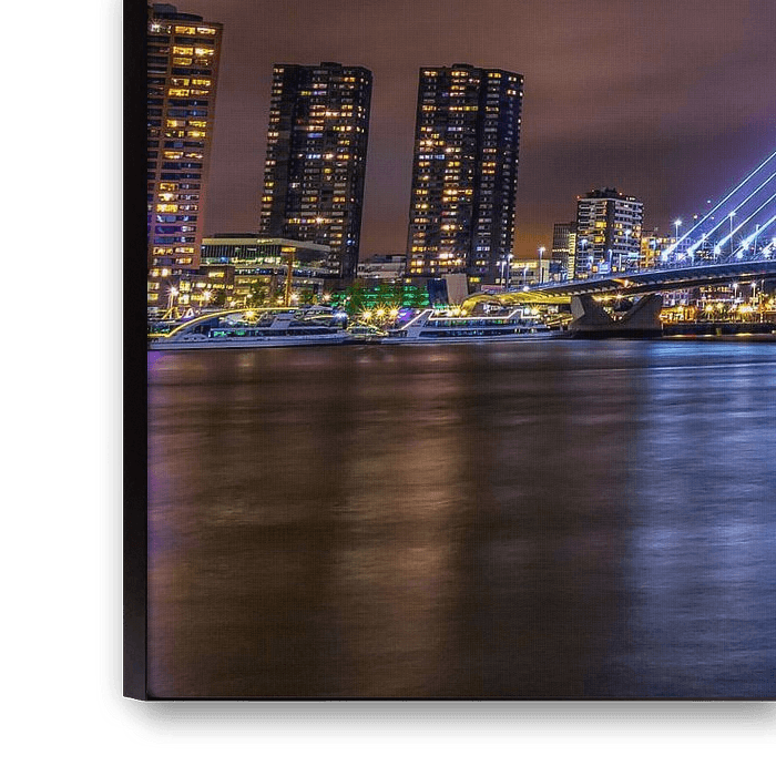 Buy this of Rotterdam Erasmus bridge at night by Michael van der Burg on canvas, ArtFrame, poster and wallpaper, printed on demand in high quality.