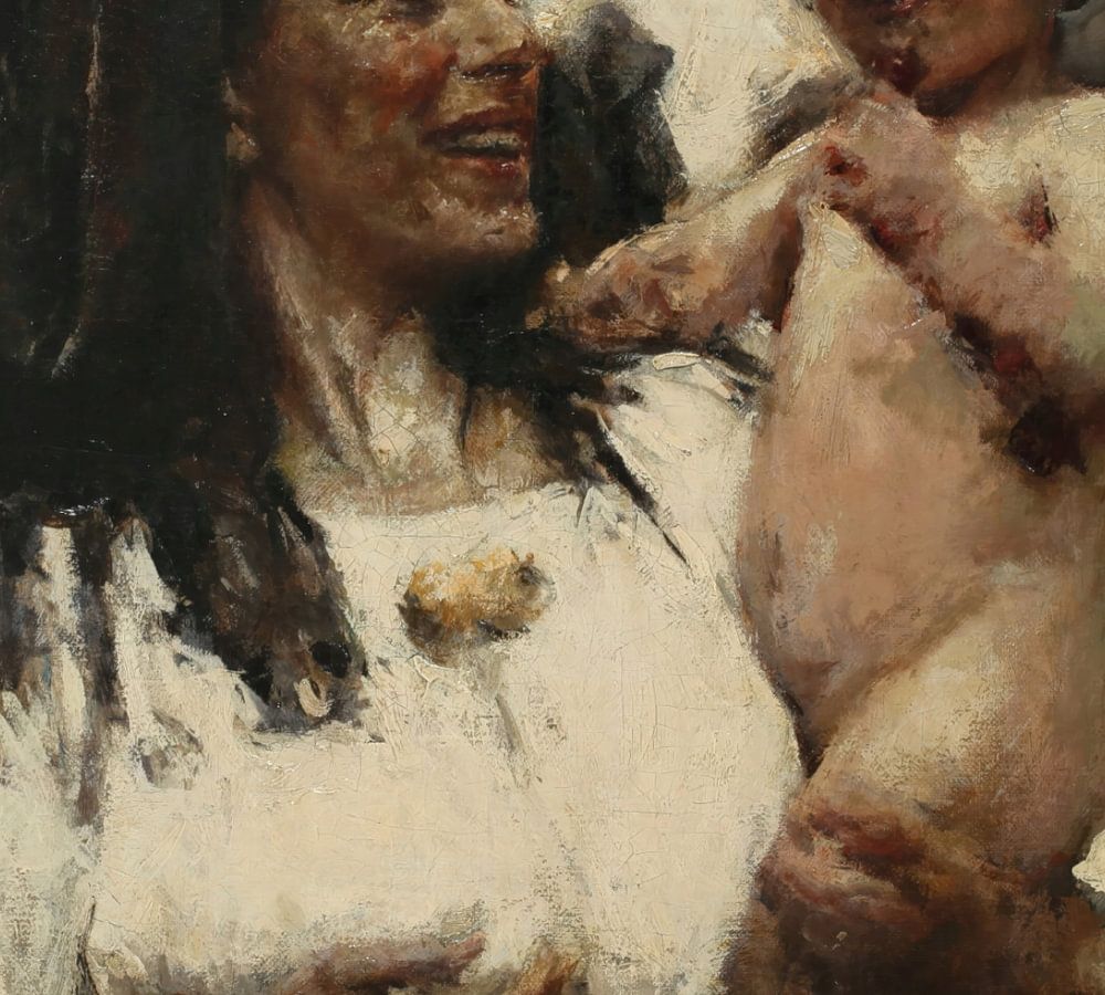 Ermina and Little Angel, portrayed by Romualdo Locatelli, is a tender and enchanting portrayal of a young girl and a cherubic angel. The painting exudes a sense of innocence and ethereal beauty. Ermina, adorned in delicate garments, gazes fondly at the angelic companion beside her. The angel, with its delicate wings and serene expression, emanates a sense of purity and divine presence.