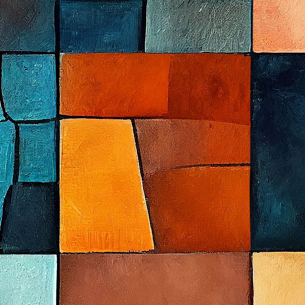 This abstract artwork is a great way to add a touch of modern elegance and tranquillity to your home or office. The geometric arrangement of horizontal and vertical planes is a great example of modern art and design. The beige and blue tones create a calming atmosphere that gives a warm and relaxed feeling, while the brown planes provide a natural look and contrast perfectly with the other colours. This artwork is the perfect way to add a touch of abstraction and creativity to your interior. Abstract art symbolises freedom, creativity, playfulness and simplicity and gives you the chance to show your unique personality in the form of art. A perfect fit for any room, from the living room to the study and from the bedroom to the office, this unique artwork is an absolute must-have for any art lover and offers a perfect way to add a touch of modern design to your home or office. Let this artwork amaze and inspire your guests, and give your interior an unparalleled look with this beautiful piece of modern art.