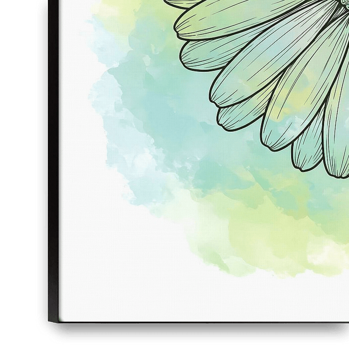 A delicate line art illustration of a daisy flower, gently shaded with soft washes of blue, green, and yellow watercolor. The intricate details of the petals and the textured center are highlighted against the dreamy, blended background, evoking a sense of tranquility and natural beauty.
