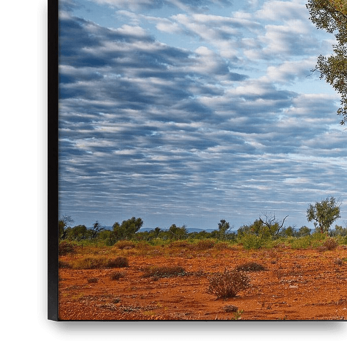Eucalyptus tree photographed against a sky full of sheep clouds. The photo was taken in the semi-desert in the north west of Australia.