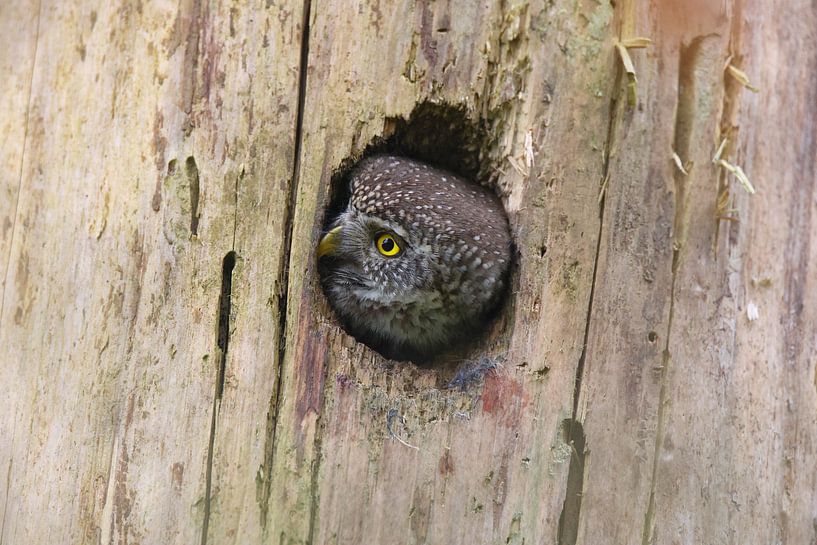 Buy the photo Eurasian pygmy owl female (Glaucidium passerinum) Swabian Jura G by Frank Fichtmüller on canvas, ArtFrame, poster and wallpaper, printed on demand in high quality.