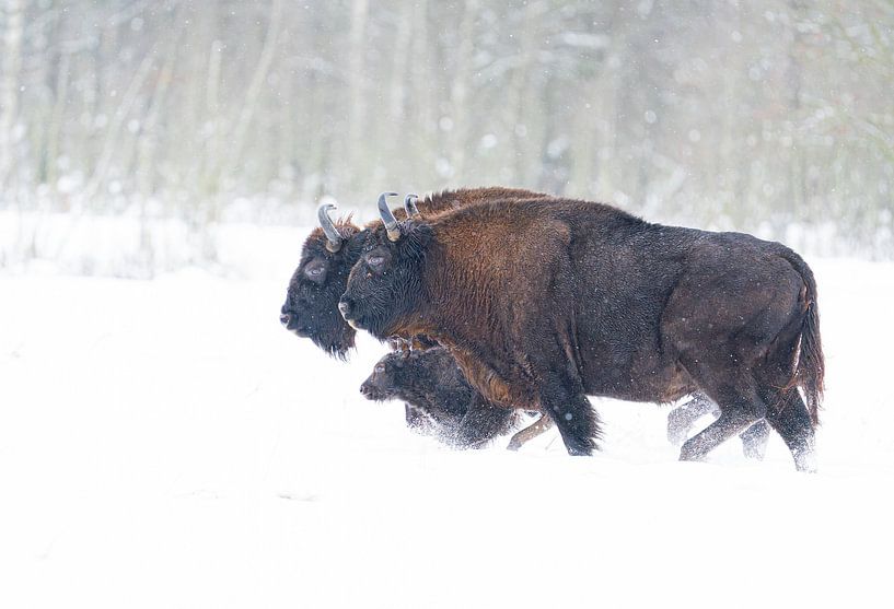 Buy the photo European bison calf in the snow by Jeffrey Hol on canvas, ArtFrame, poster and wallpaper, printed on demand in high quality.