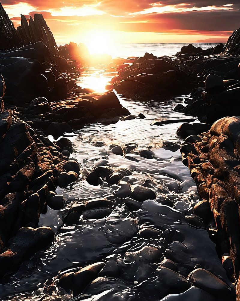 Buy this landscape artwork Evening by the sea by fernlichtsicht on canvas, ArtFrame, poster and wallpaper, printed on demand in high quality.