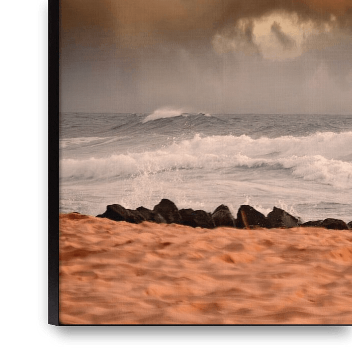 Your chosen art on canvas, stretched in an aluminum frame. Quick and easy to change for a fresh look and exactly as you want it.