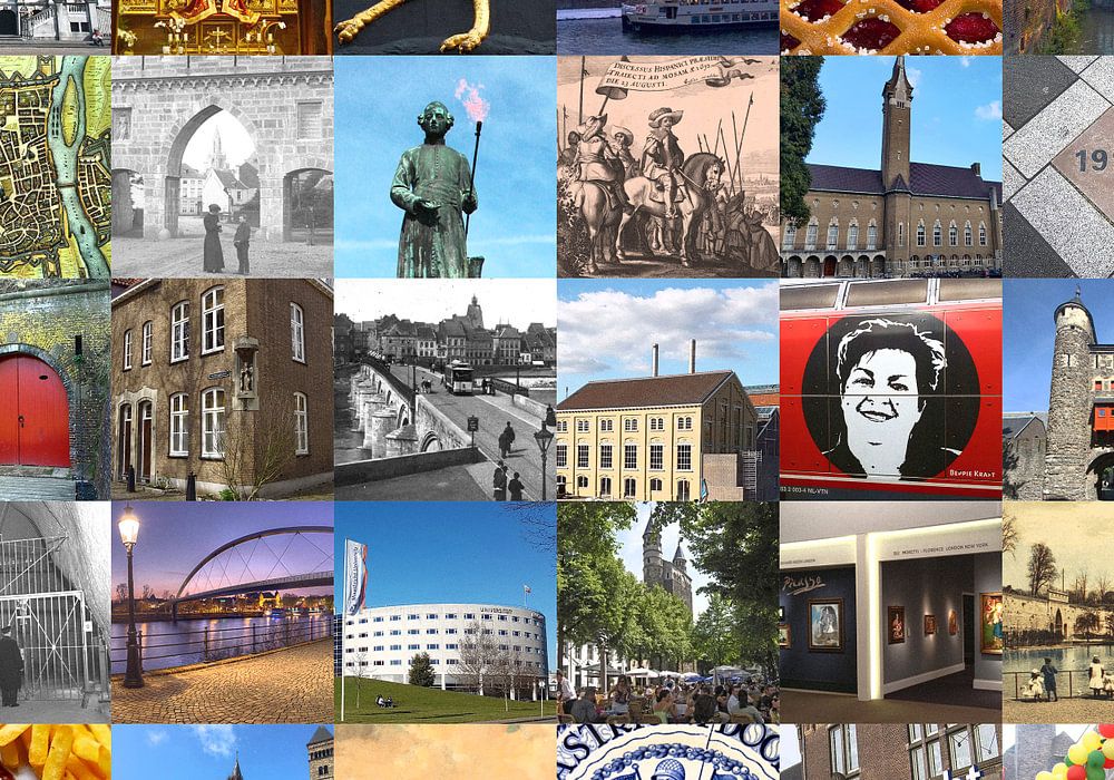 I made this collage of all kinds of typical Maastricht buildings, photos, dishes and culture. You see the Servaasbrug, the Vrijthof, the market, the basilica, the Onzelievevrouweplein the Maas, sanctuaries, fortifications, architecture, neighbourhoods and old photographs. Can you recognize and name them all?