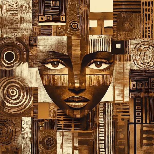 Golden Mosaic tells the story of a face that appears out of a sea of patterns, lines and textures - as if the identity of the woman depicted is composed of countless layers of history, culture and symbolism. The portrait is not a singular image, but a composite of fragments that together form a powerful, harmonious whole.
