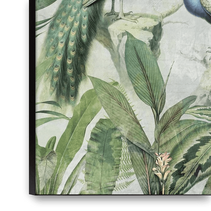 Buy this flower art Exotic blue peacock birds jungle landscape 1 by Floral Abstractions on canvas, ArtFrame, poster and wallpaper, printed on demand in high quality.