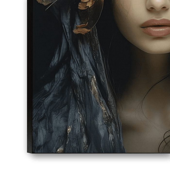 Extraordinary portrait in blue and gold tones. This work is a real eye-catcher! This work looks best on artframe, dibond, aluminium or glass.
