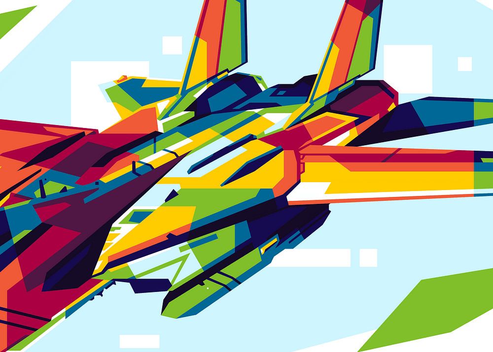 F-14 Tomcat in WPAP made with curved shapes and a combination of many colors to form a cute, elegant, cool and of course colorful F-14 Tomcat object.