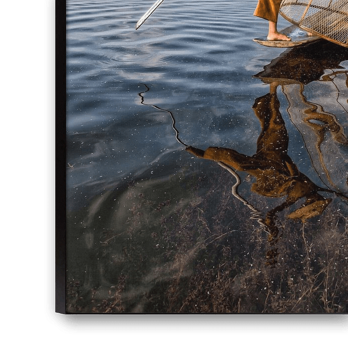 Buy this landscape artwork FISHERMAN AT SUNRISE vist ON TRADITIONAL WAY TO INLE LAKE IN MYANMAR. With a basket the fish is caug by Wout Kok on canvas, ArtFrame, poster and wallpaper, printed on demand in high quality.