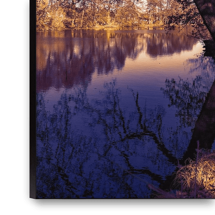 Buy this landscape artwork Fall season landscape with lake water and autumn trees by Alex Winter on canvas, ArtFrame, poster and wallpaper, printed on demand in high quality.