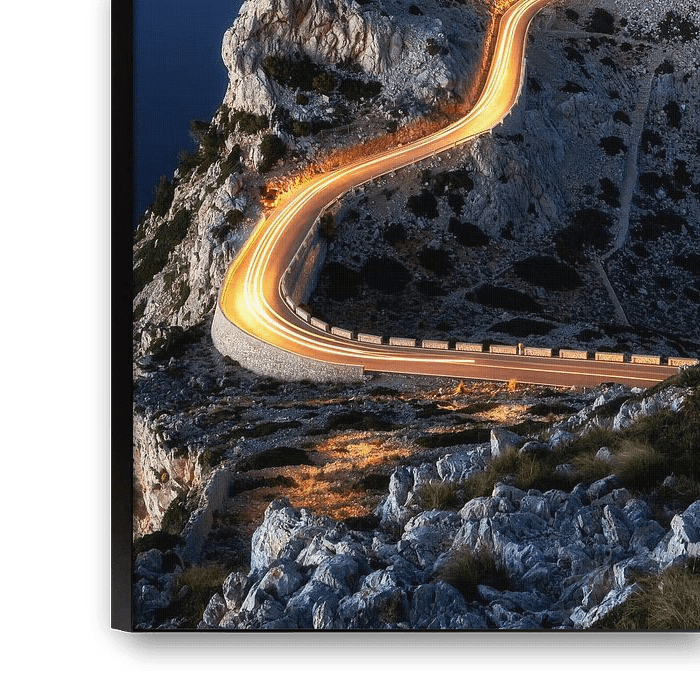 Buy the photo Far de Formentor lighthouse at Cap Formentor on Mallorca in the evening at night by Daniel Pahmeier on canvas, ArtFrame, poster and wallpaper, printed on demand in high quality.
