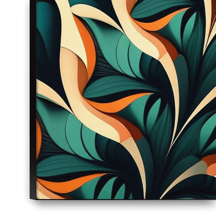 Feathered Flow is a captivating pattern of overlapping curves that mimic the organic elegance of leaves or feathers in motion. A rich blend of turquoise, orange and cream tones enhances the sense of fluidity and depth, drawing the eye across the composition. This vibrant design brings a dynamic, nature-inspired energy to any modern…
