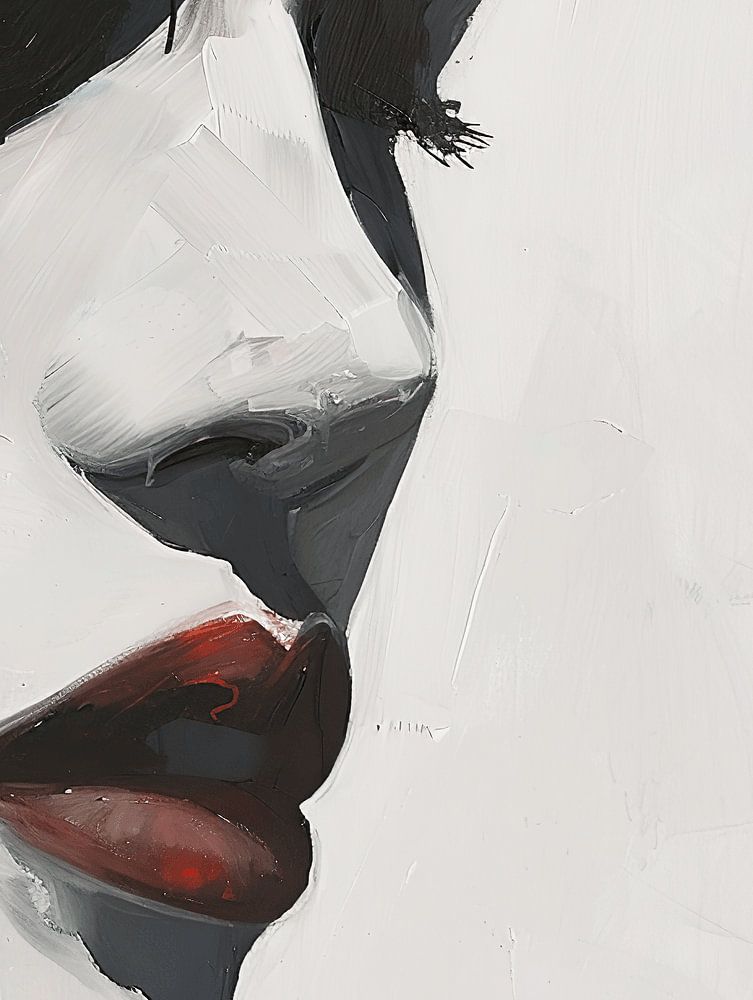 On this masterpiece, painted with oil paint, you see a young woman with red lips who is celebrating the deep, cosy feeling of stillness, peace and harmony during her meditation?