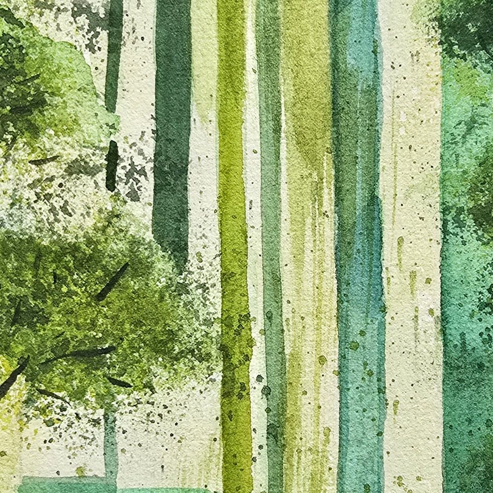 Abstract watercolour in shades of green. Corresponds to the element wood in Feng Shui. Supports the family and prosperity sector in the east or south-east. The picture also works well in combination with my other Feng Shui pictures to hang them together in a central location (Chi).