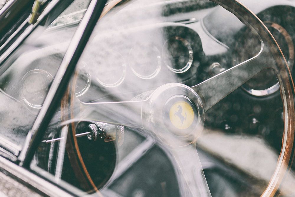 Ferrari 250 GT Berlinetta Lusso 1960s classic Italian GT car interior. The 250 GT Lusso is an Italian Gran Turismo road car with a V12 engine produced by Ferrari from 1963 to 1964.