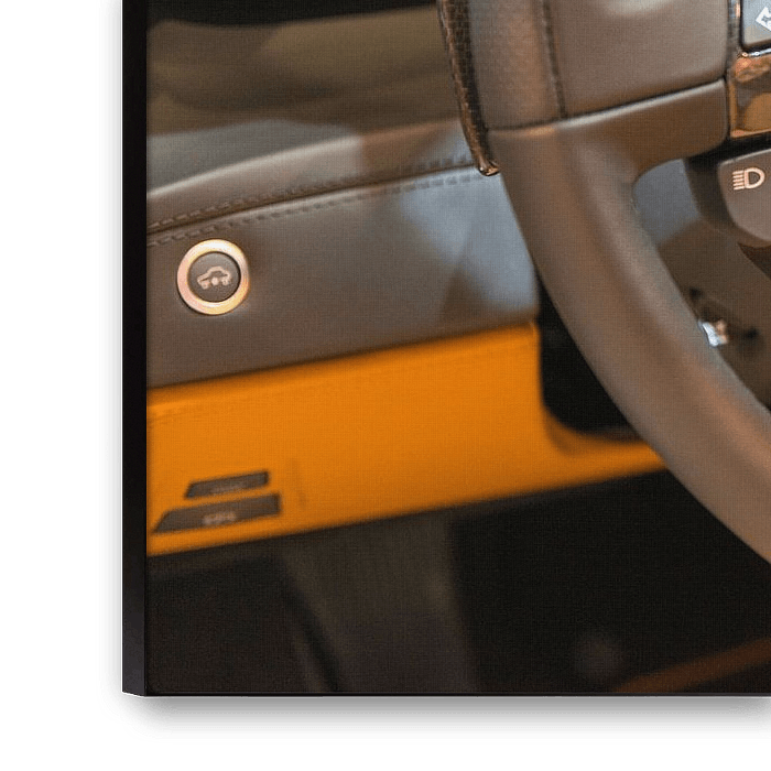 Steering wheel with buttons and flappy paddle gear shift on a Ferrari 488 Spider convertible sports car. The 488 Spider is the open version of the Ferrari 488 GTB V8 sports car with a retractable hardtop.