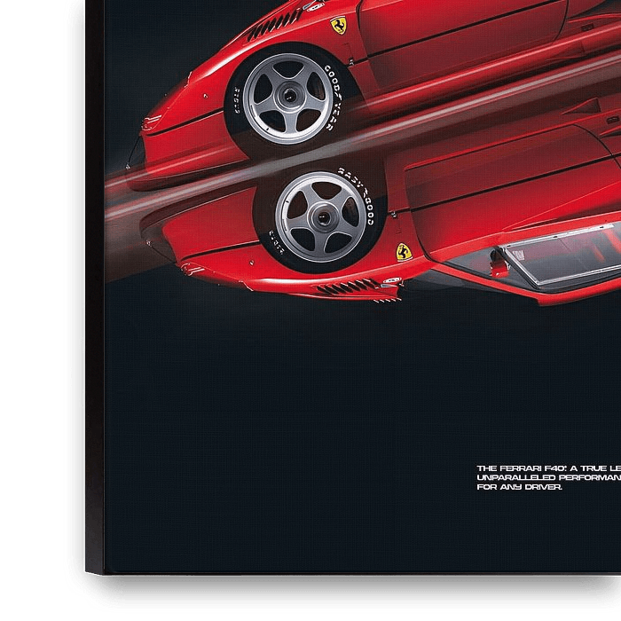 Buy this abstract artwork Ferrari F40 Poster by Ali Firdaus on canvas, ArtFrame, poster and wallpaper, printed on demand in high quality.