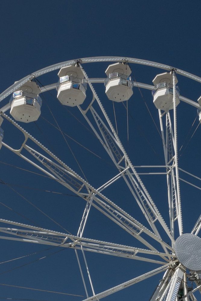 White Ferris wheel against a blue sky in summer.
