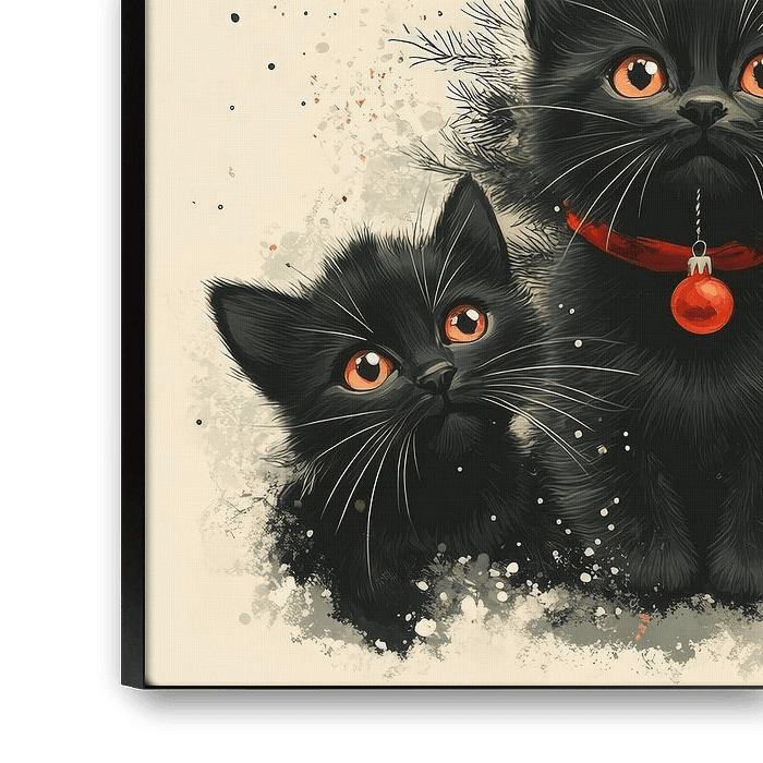 Bring joy and whimsy to the holiday season with this enchanting illustration of playful black cats gathered around and perched on a beautifully decorated Christmas tree. With glowing orange and gold ornaments, twinkling stars, and curious feline expressions, this artwork captures the magic of Christmas and the mischievous charm of our furry companions. A perfect piece for cat lovers and holiday enthusiasts alike!