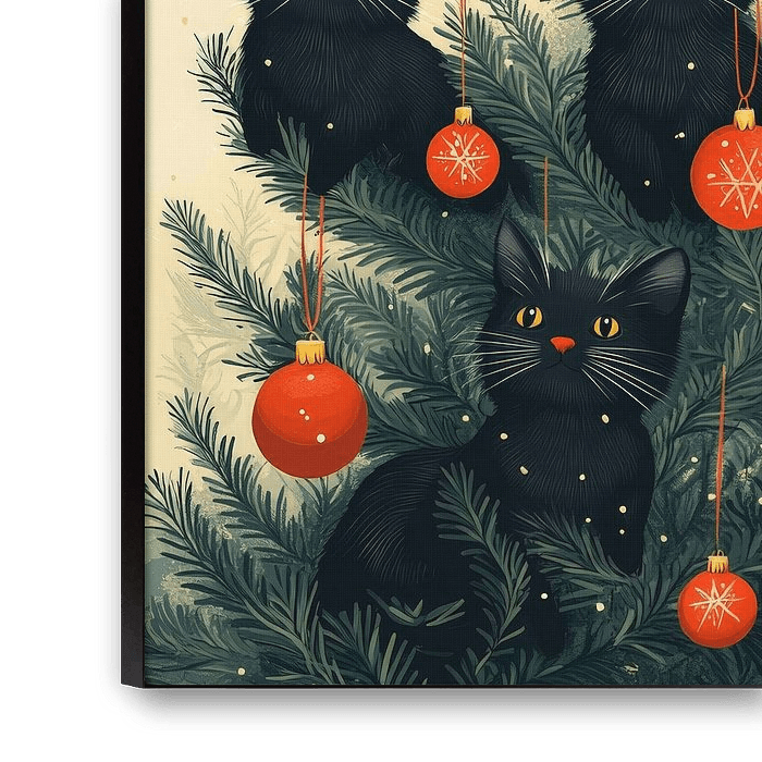Bring joy and whimsy to the holiday season with this enchanting illustration of playful black cats gathered around and perched on a beautifully decorated Christmas tree. With glowing orange and gold ornaments, twinkling stars, and curious feline expressions, this artwork captures the magic of Christmas and the mischievous charm of our furry companions. A perfect piece for cat lovers and holiday enthusiasts alike!