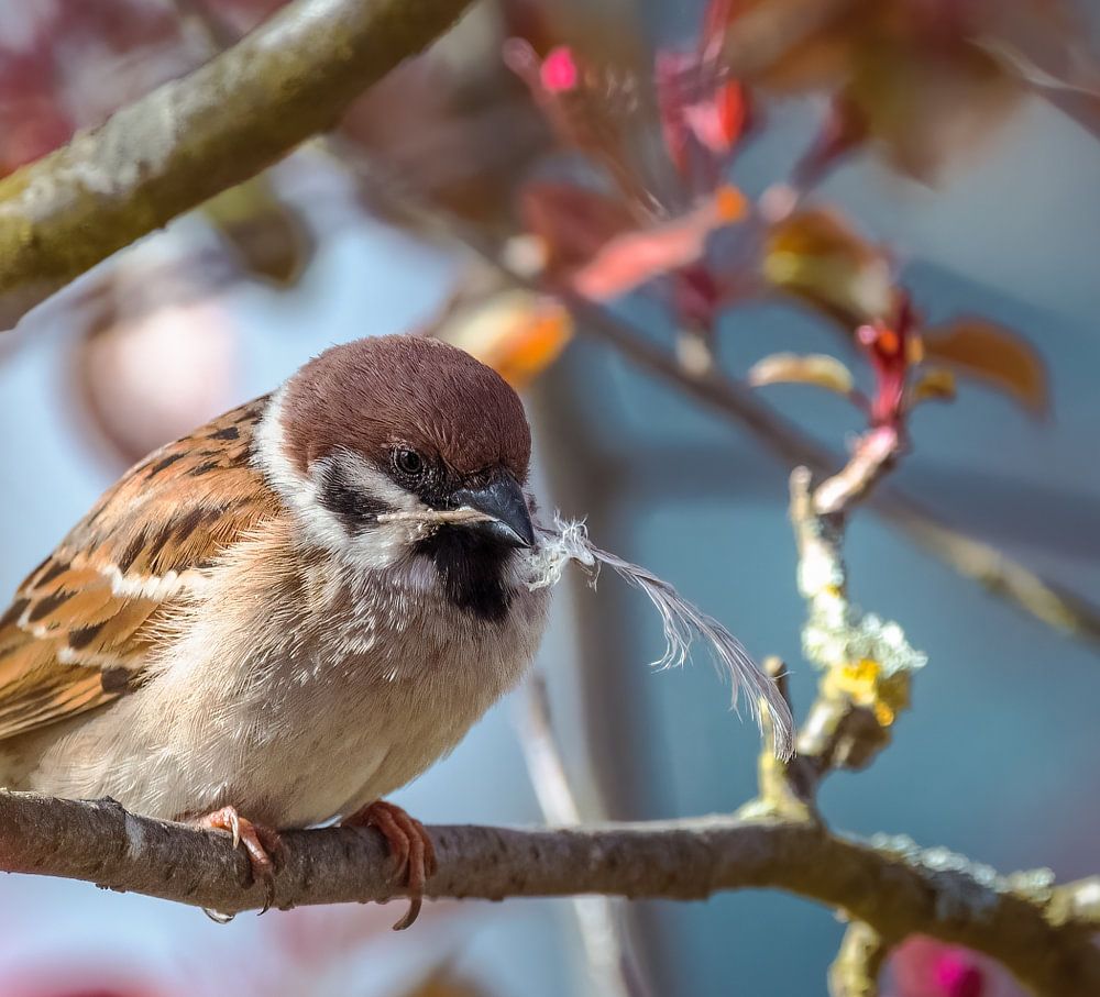 Buy this bird art Field sparrow collects material for its nest by Manfred Angermayr on canvas, ArtFrame, poster and wallpaper, printed on demand in high quality.
