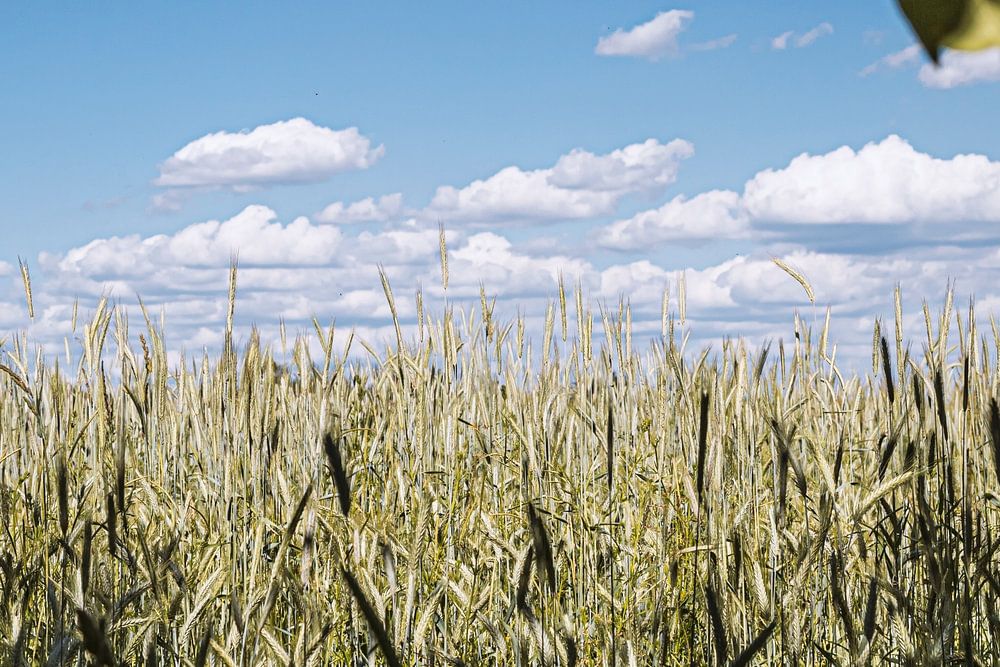 a view through the trees to a corn field on a summer day