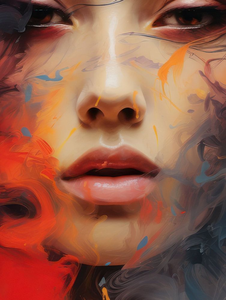 "Fiery Gaze" is a portrait that exudes emotion and mystery through the woman's intense gaze, surrounded by a tumult of passionate swirls of colour. Smoky greys mix with fiery reds and oranges, suggesting that her thoughts and feelings are in a continuous state of flux. This artwork captures a moment of both strength and vulnerability, reflecting the complexity of the human spirit in the jumble of colours. Perfect for a modern interior, "Fiery Gaze" embodies a sense of dynamism and power and would be a provocative focal point in any space that appreciates contemporary art.