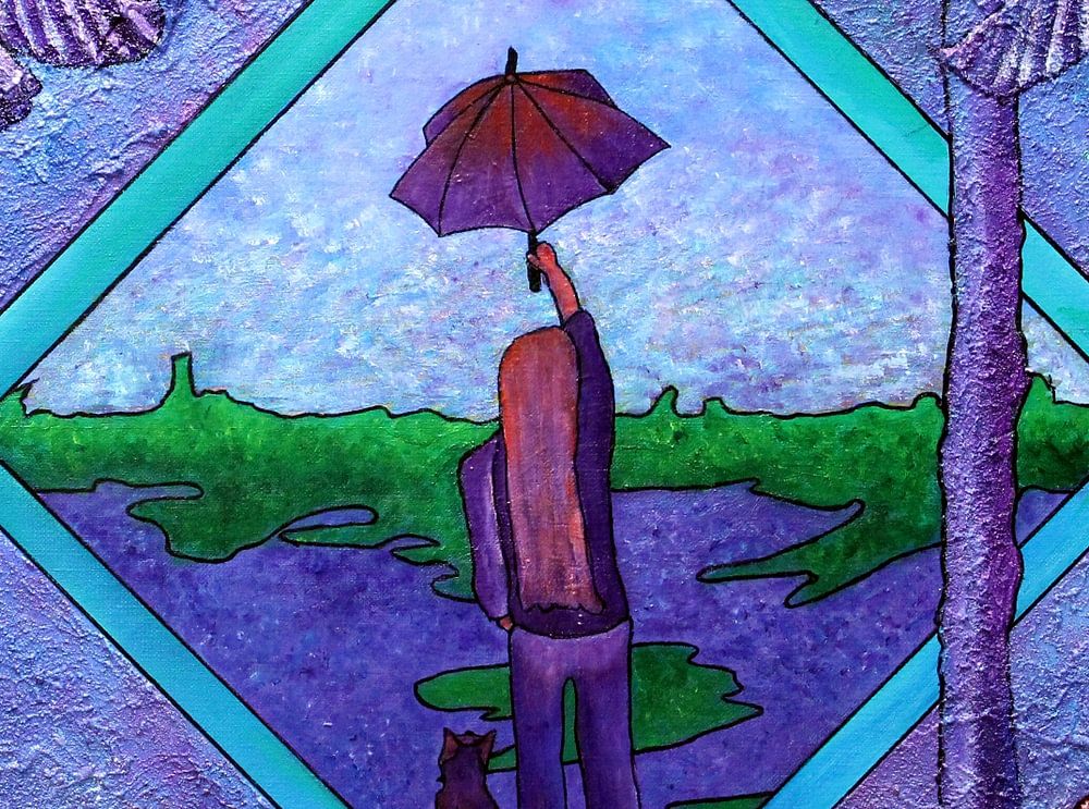 Painting made in response to the death of a friend. She was of twins and (that's how it felt to me) finally complete again with her twin sister.