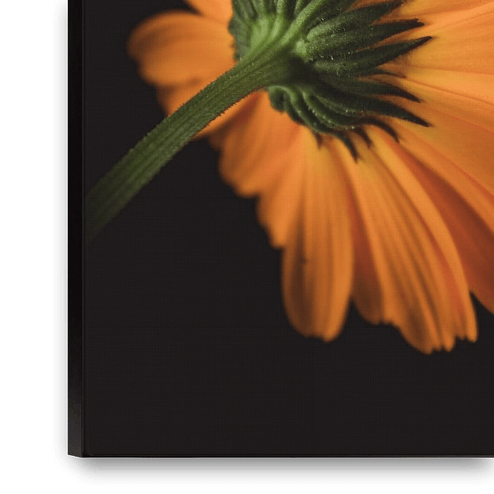 This photography artwork offers a beautiful perspective of the back of a marigold, bringing the interesting details and texture of the flower to life beautifully. The bright orange hues are still visible, but the focus is on the delicate veins and soft texture of the petals. The light accentuates the delicate shapes and creates a subtle…