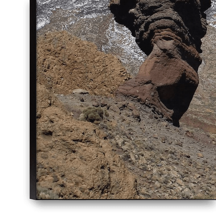 Finger of God in front of the snow-covered Teide in the Teide National Park on Tenerife.