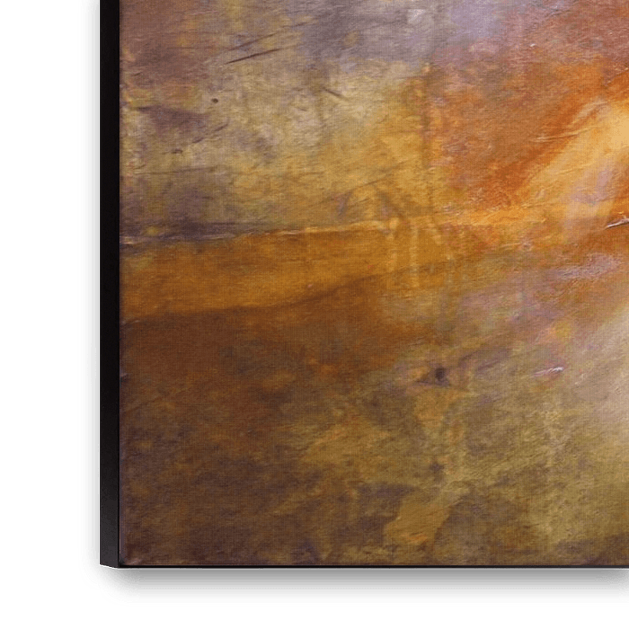 Bright shapes and colours evoke a fire in the fireplace with a cosy and homely atmosphere. Lively structures, full of light and life.
