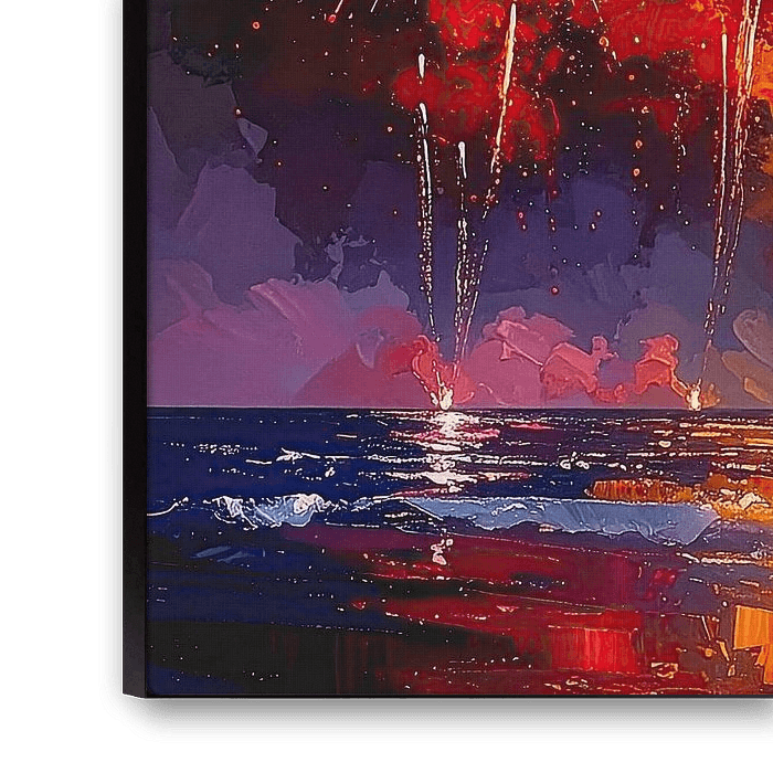 Buy this abstract artwork Fireworks: A pastose celebration of LGBTQIA+ colours over a silent ocean of expectation and renewal by AidasignArt on canvas, ArtFrame, poster and wallpaper, printed on demand in high quality.